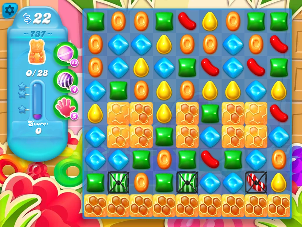 Level 737 guide and cheats: To pass this level, you must clear 28 bears from honey and score at least 28,000 points in 22 moves or fewer. In the game you have the ability to facebook sync and battle against your.