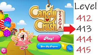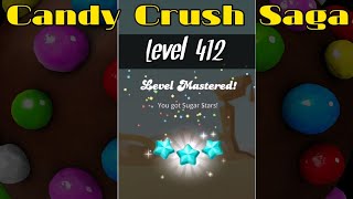 In candy crush saga level 412 matching candies on the bottom is better so always start at the bottom.; Level 412 is the 12th level in lollipop meadows (episode 21) and the unknown th animal level in candy crush friends saga. Looking for candy crush level 412 cheats?